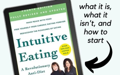 - Grab a copy of the Intuitive Eating book. You’ll gain so much more insight from the book itself than I could possibly write in a blog post! Plus, you’ll debunk so many more misconceptions that you see all over social media. You can snag a copy of the 4th edition of Intuitive Eating here!